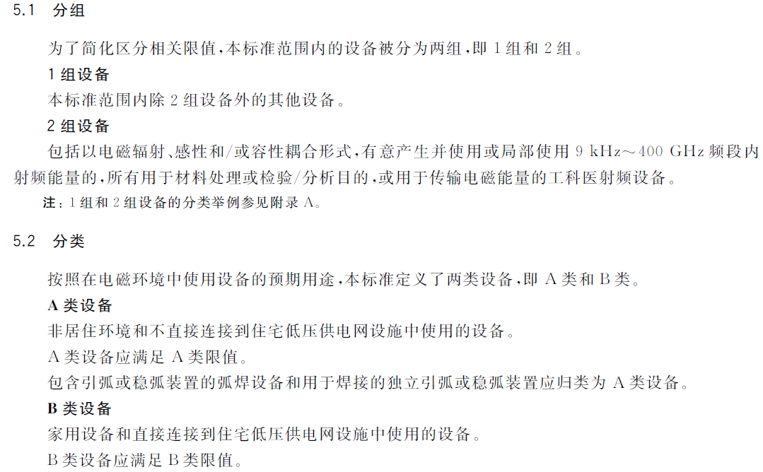 - 根据 CISPR 11(工业、科学、医疗设备)或 CISPR 32(信息技术设备),A 类设备的传导骚扰和辐射骚扰限值高于 B 类。